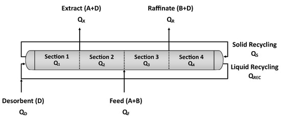 - Azevedo, D.C.S.; Rodrigues, A.E. Design of a simulated moving bed in the presence of mass-transfer resistances. AIChE J. 1999, 45, 956–966. [Google Scholar] [CrossRef]