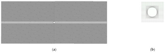 (a) Discretized model for the single cylinder, (b) a closer view of the grid for the single cylinder.