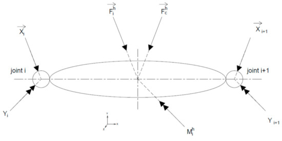 From Figure 4 and Figure 5, one can define the internal torques at the joints between two joints, i and i + 1, i.e., by: