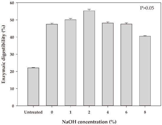 Enzymatic digestibility after pretreatment of Sicyos angulatus with different concentrations of NaOH at 121 °C for 10 min.