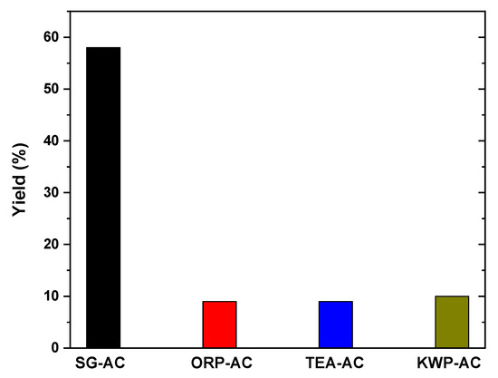 Yield (%) of the prepared AC samples.