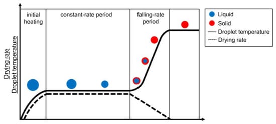 Schematic representation of droplet drying kinetics of a single droplet during the spray-drying process. Reproduced from Boel et al. [].