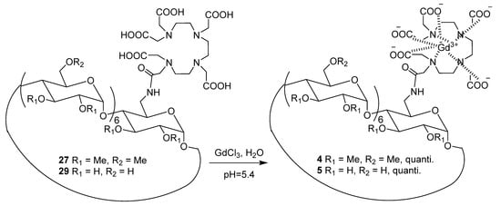 Formation of β-CD(OMe)-GdTTHAMA 4, β-CD(OH)-GdDOTAMA 5.