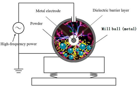 Schematic design of dielectric barrier discharge plasma-assisted ball milling.