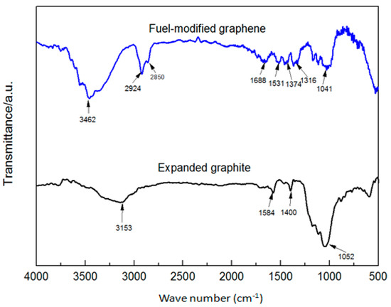 FTIR spectra of expended graphite and fuel-modified graphene.