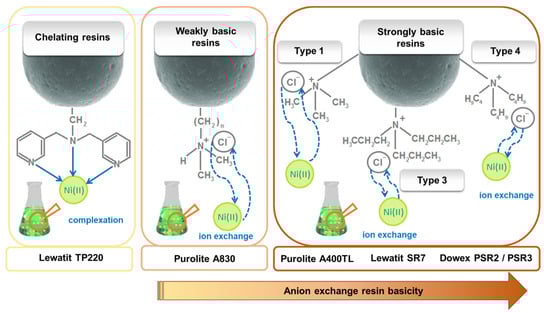 - Xiuling, S.; HuiPu, D.; Shijun, L.; Hui, Q. Adsorption Properties of Ni(II) by D301R Anion Exchange Resin. J. Chem. 2014, 2014, 1–5. [Google Scholar] [CrossRef][Green Version]