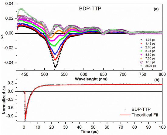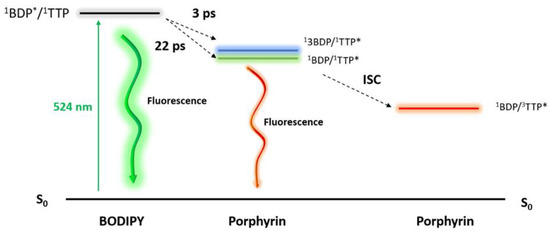 - Dumanoğulları, F.M.; Tutel, Y.; Küçüköz, B.; Sevinç, G.; Karatay, A.; Yılmaz, H.; Hayvali, M.; Elmali, A. Investigation of ultrafast energy transfer mechanism in BODIPY-Porphyrin dyad system. J. Photochem. Photobiol. A Chem. 2019, 373, 116–121. [Google Scholar] [CrossRef]
