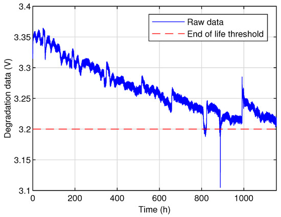 The profile of the available PEM-FC voltage in the presence of degradation is given in Figure 5. This figure shows that although the profile of the voltage has a tendency, the signal is highly noisy and presents abrupt variations and some outliers.