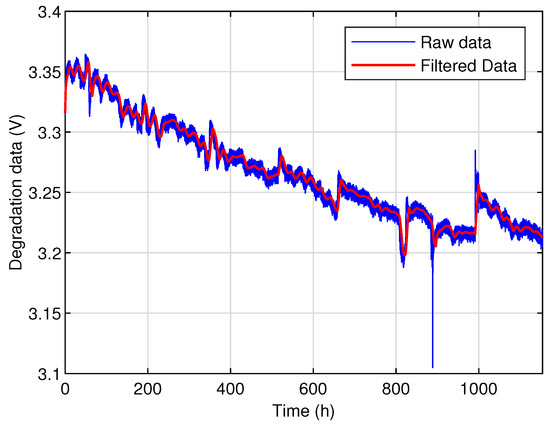 The result of the application of the SG filter on the raw signal is given in Figure 6. This result shows that the initial profile of the degradation signal is preserved, but the noises and outliers are eliminated.