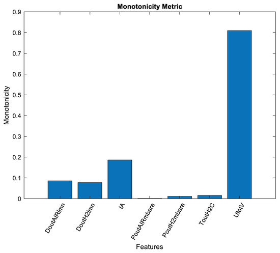 The monotonicity analysis of HIs generated by data-driven methods has been the subject of several research works [13,34]. The monotonicity metric presented below is the one proposed in [13,34], as its score is easily interpretable (between 0 and 1), where 1 indicates the most satisfactory and 0 the least satisfactory level of the specific HI property: