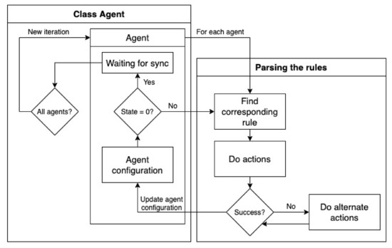 | Unknown direction to move the agent. Check rules. | During action move the agent, the argument value x in rule Move(x) must be in range 1–4 | Minor error, simulation continues, the rule is ignored |