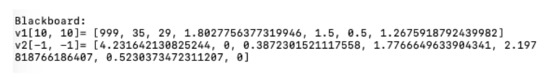 | Blackboard: [vectors v1 and v2] | At the end of each iteration | Information about the new blackboard updates. |