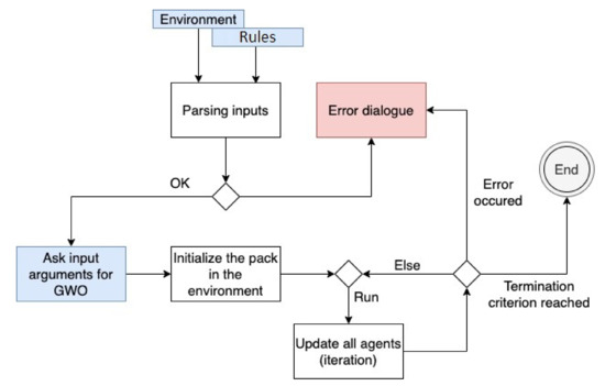 - Valenta, D.; Ciencialová, L.; Langer, M.; Cienciala, L. Modelling of Grey Wolf Optimization Algorithm Using 2D P Colonies. In ITAT 2020, Information Technologies–Applications and Theory 2020, ITAT 2020 Conference Proceedings; CEUR: Oravská Lesná, Slovakia, 2020; pp. 192–200. [Google Scholar]