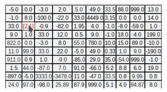 Each of the elements stored in the file is checked during the parsing phase. The file is successfully parsed only if all of the elements are of the float type, and the number of elements is the same in each line. Otherwise, a syntax error occurs.