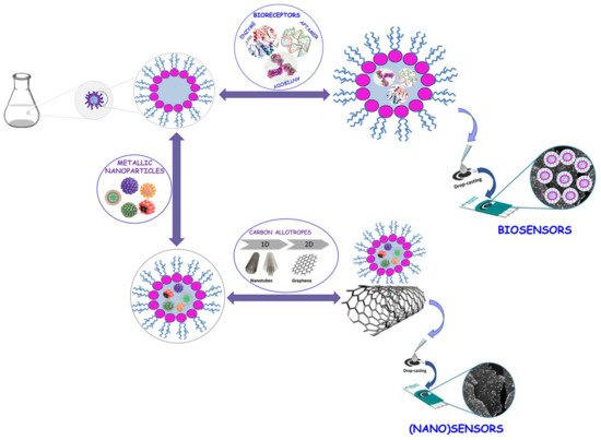 - Zapp, E.; Souza, F.D.; Souza, B.S.; Nome, F.; Neves, A.; Vieira, I.C. A bio-inspired sensor based on surfactant film and Pd nanoparticles. Analyst 2013, 138, 509–517. [Google Scholar] [CrossRef] [PubMed]