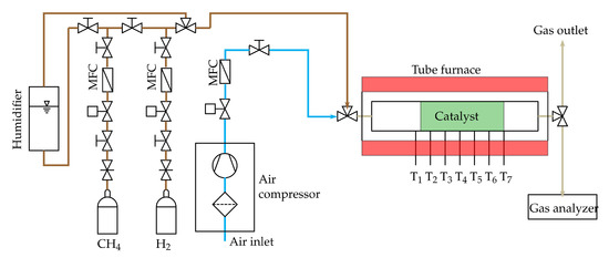 - Loukou, A.; Mendes, M.A.; Frenzel, I.; Pereira, J.M.; Ray, S.; Pereira, J.C.; Trimis, D. Experimental and numerical investigation of methane thermal partial oxidation in a small-scale porous media reformer. Int. J. Hydrog. Energy 2017, 42, 652–663. [Google Scholar] [CrossRef]