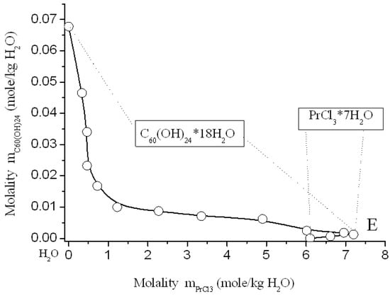 | № | Molality mC60(OH)24, (mole/kg H2O) | Molality mPrCl3, (mole/kg H2O) | Solid Phase |