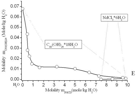 | № | Molality mC60(OH)24. (mole/kg H2O) | Molality mNdCl3. (mole/kg H2O) | Solid Phase |