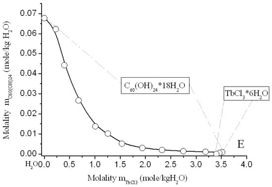 | № | Molality mC60(OH)24. (mole/kg H2O) | Molality mTbCl3. (mole/kg H2O) | Solid Phase |