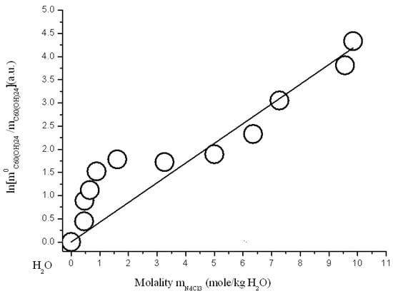 - Charykov, N.; Semenov, K.; Keskinov, V.; Kulenova, N.; Shaimardanov, Z.; Gerasimova, L.; Kanbar, A.; Letenko, D. Cryometry and excess thermodynamic functions in water soluble of the fullerenol C60(OH)24. Nanosyst. Phys. Chem. Math. 2020, 11, 205–213. [Google Scholar] [CrossRef]