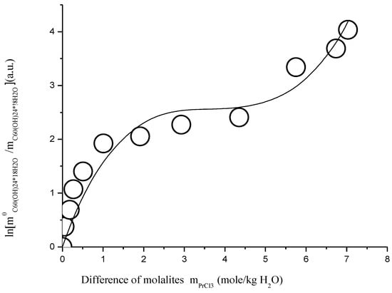 Charykov, N.A.; Keskinov, V.A.; Tsvetkov, K.A.; Kanbar, A.; Semenov, K.N.; Gerasimova, L.V.; Shaimardanov, Z.K.; Shaimardanova, B.K.; Kulenova, N.A. Solubility of Rare Earth Chlorides in Ternary Water-Salt Systems in the Presence of a Fullerenol—C60(OH)24 Nanoclusters at 25 °C. Models of Nonelectrolyte Solubility in Electrolyte Solutions. Processes 2021, 9, 349. https://doi.org/10.3390/pr9020349