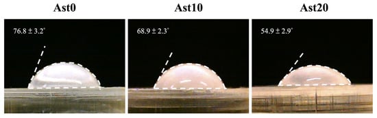 The water contact angle in Ast0 (0 µM), Ast10 (10 µM), and Ast20 (20 µM) groups.