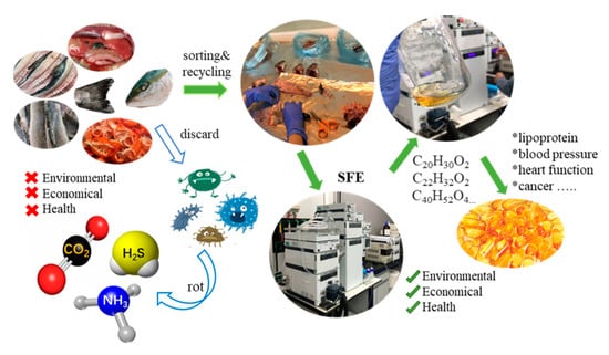 In summary, we can suggest that SFE is a suitable technology to develop sustainable and efficient extraction processes compared to conventional extraction not only for waste management from the aquatic industries but also to satisfy the high demand for valuable compounds such as PUFA.