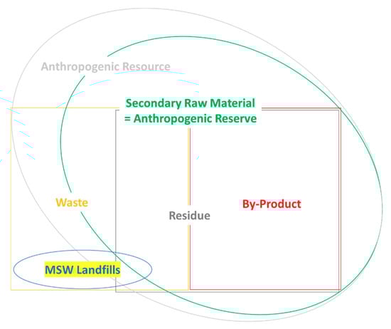 Location of MSW landfills in waste and resource terminology (Reprinted with permission from ref. [27]. Copyright 2020. Daniel Vollprecht).