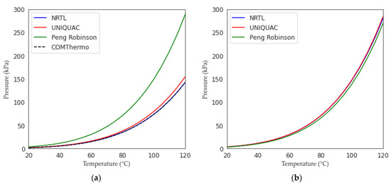 Jia et al. (2018) [7] investigated the separation of the n-propanol/water azeotrope, using Aspen Plus, with different thermodynamic models. According to their experimental data, n-propanol/water systems form a homogeneous azeotrope, but Aspen Plus simulations mispredicted it by calculating two liquid phases [7]. On the other hand, de Tommaso et al. (2020) [1] calculated the absence of an azeotrope for the water and acetic acid blends, using available binary parameters from the PRO/II database and the UNIQUAC model.