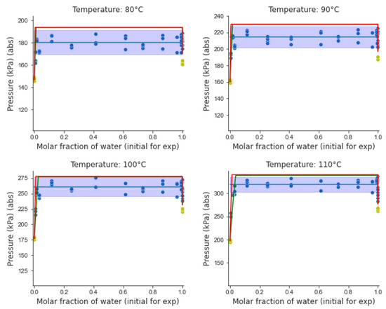 Thus, to obtain Txy or Pxy equilibrium values, the mutual solubilities at VLL equilibrium can be calculated by solving Equation (7), using the fsolve function in Python. This function is a wrapper around MINPACK’s hybrid and hybrid algorithm for solving non-linear equations [32].
