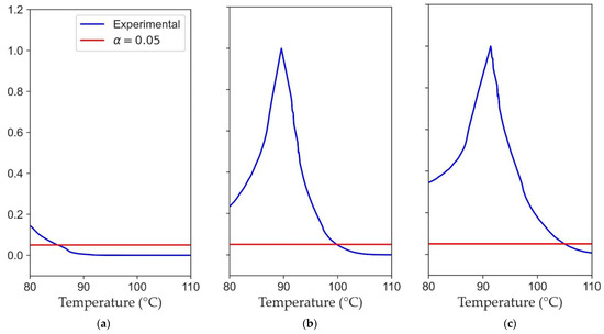 Figure 13. T-student test for Highly Diluted Octane in Water Experiments (a) 0.1%wt octane, (b) 0.25%wt octane, (c) 0.5%wt octane.