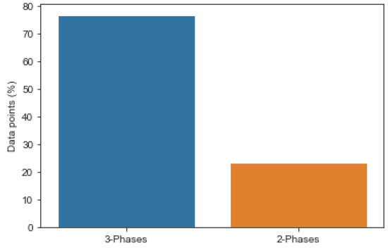 Figure 16. Distribution of Three Phase (liquid–liquid–vapor) and Two Phase (Liquid–vapor) Data Available.