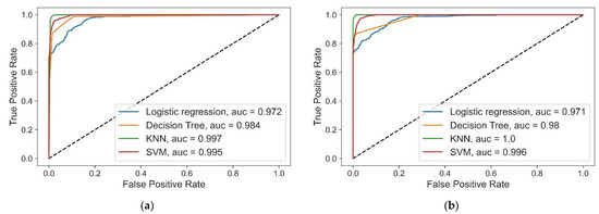 Figure 18. Area under the ROC curve (AUC) and receiver operating characteristics (ROC)—Results for Strategies (a) 1 and (b) 2.