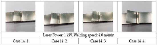 After the welding experiment for each case, the welding part was visually observed as shown in Figure 11.