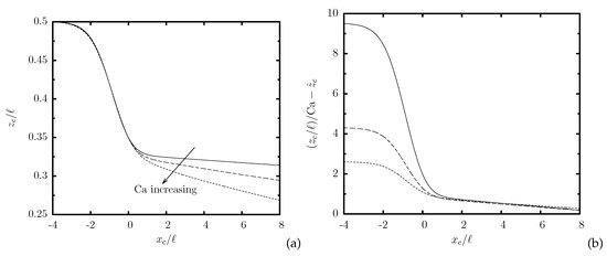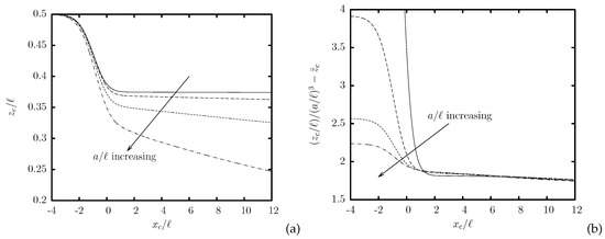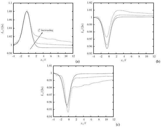 decreased; i.e., the interfacial deformation increased as the capsule flowed through the constriction. Observe that under the same conditions, a larger capsule flowing in the constriction produced a higher flow blocking and thus increased hydrodynamic forces which result in higher interfacial deformation.