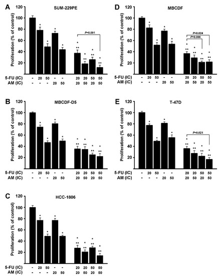 3.2. The Antiproliferative Activity of 5-FU Was Significanlty Enhanced by AM in Cultured Breast Cancer Cells