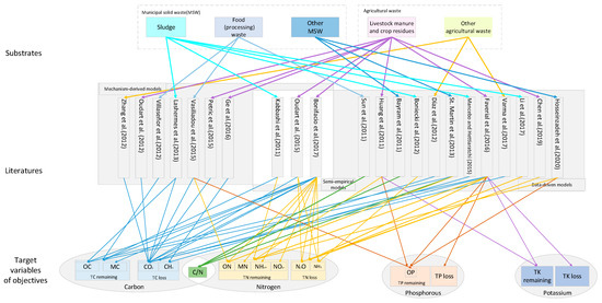 In addition, mechanism-derived models mainly simulated the relevant mass balance of C and N, and, to a lesser extent, the mass balance of P. In contrast, the data-driven models could cover a broader range of simulated objects and even involved K. However, there were no mechanism-derived models that included K in the selected research.