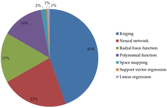 The most commonly used surrogate model types are the polynomials, Kriging models or nonlinear regression models of machine learning, like radial basis functions, artificial neural networks and support vector machines as seen in Figure 7. Some examples are presented in Table 4 and Table 5.