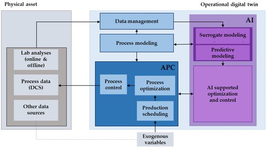 - Örs, E.; Schmidt, R.; Mighani, M.; Shalaby, M. A Conceptual Framework for AI-based Operational Digital Twin in Chemical Process Engineering. In Proceedings of the 2020 IEEE International Conference on Engineering, Technology and Innovation (ICE/ITMC), Cardiff, UK, 15–17 June 2020; pp. 1–8. [Google Scholar] [CrossRef]