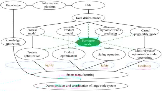 Digital twins often use detailed mathematical models, which have high computational demands that hinder the implementation of effective solutions of optimisation [7], including multi-objective particle swarm optimisation [8], and control and scheduling tasks [9]. In the case of chemical engineering systems, the simulation tasks would be the modelling of chemical manufacturing processes [10], scheduling scenarios [11] or complex thermodynamics [12]. Most of these simulations require high computational demand and time to evaluate the different unknown model functions used in the simulator. The application of finite difference methods is hindered in the case of models that are noisy or discontinuous [13]. Therefore, the application of simulations with high computational demands in performing domain exploration, optimisation or sensitivity analysis becomes difficult because of the high number of the required function evaluations. An applicable solution to the aforementioned problems is the use of surrogate models (also known as metamodels, regression models or emulators), which are mathematically simple models that map or regress the input–output relationships of a more complex, computationally intensive model.