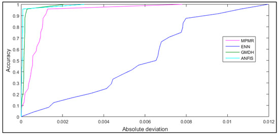 Regression Error Characteristic (REC) curve [53,54] gives the graph of error tolerance versus percentage of points that are predicted within the tolerance. The x-axis and the y-axis represent the error tolerance and the accuracy of a regression function respectively. The area over the REC curve (AOC) gives the approximation of the expected error. Lesser the AOC, better is the performance of the models. Thus, ROC curves allow easy and reliable visual estimate of the performance of the models.