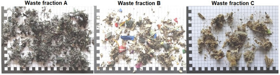 Waste fraction A, B, and C (left to right) [13] (Reproduced with permission from Schwabl D.; Proceedings of tenth “Recycling und Rohstoffe” Conference published by TK-Verlag, Berlin, 2017).