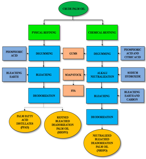 - Yusoff, M.S.A.; Thiagarajan, T. Refining and Downstreaming Processing of Palm Oil and Palm Kernel Oil. In Selected Readings on Palm Oil and Its Uses; Palm Oil Research Institute of Malaysia: Kuala Lumpur, Malaysia, 1993; pp. 150–174. [Google Scholar]