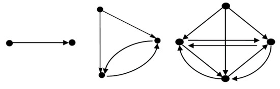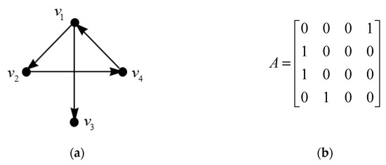 All the graphs in Figure 5 are directed graphs. A set of vertices or nodes can be represented as and where the vertices and edges are also known as nodes and links, respectively. The adjacency matrix of a graph is presented as . An adjacency matrix is given in the following definition.