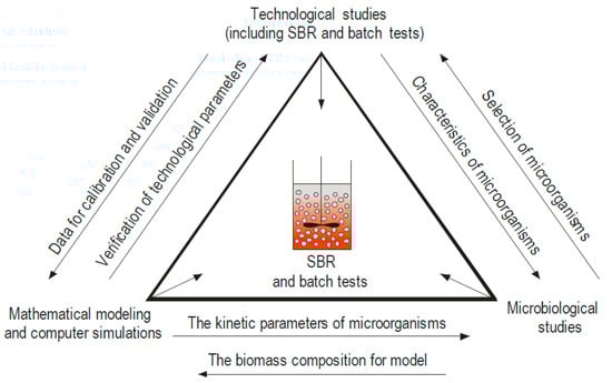 The excess amount of the nutrients (in particular nitrogen and phosphorus), released to the environment from the point sources, such as wastewater treatment plants (WWTPs), is associated with eutrophication process acceleration and threatens aquatic life. While effective phosphorus removal from municipal wastewater could be ensured by coagulation, in terms of nitrogen removal, reasonable costs are obtained exclusively for the biological treatment. Thus, the principles of biological nitrogen removal (BNR) methods have stimulated interests worldwide [1]. A combination of the nitrification and denitrification is a conventional method for removing nitrogen from wastewater [2]. In the frame of the first process—nitrification ammonium is oxidized to nitrite by ammonia-oxidizing bacteria (AOB) (nitritation), and nitrite is subsequently converted to nitrate by nitrite-oxidizing-bacteria (NOB) (nitratation). After transition into anoxic conditions, under limited dissolved oxygen concentration, nitrite/nitrate is reduced to dinitrogen gas by heterotrophic denitrifies with organic compounds such as methanol, ethanol, acetate, or glucose, which serve as electron donors. On the one hand, systems based on conventional nitrification/denitrification (N/DN) enable to achieve high efficiencies of nitrogen removal, on the other hand, such efficiency comes at high operational costs (basically due to high oxygen demand to ensure full nitrification) and sufficient amount of easy bioavailable carbon source for denitrification has to be assured [3,4]. For example, N/DN processes consumes approximately 50% to 90% of electricity under pilot-scale conditions, which is 15–49% of the total operational costs [5,6].