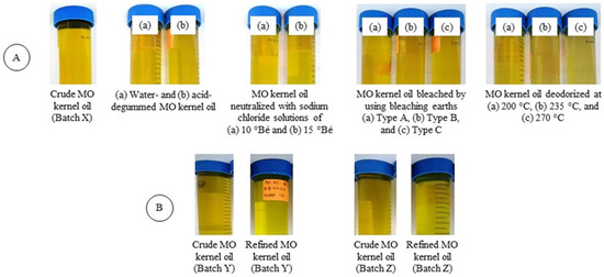 Abd Hadi, H.M.; Tan, C.P.; Mohamad Shah, N.K.; Tan, T.B.; Niranjan, K.; Mat Yusoff, M. Establishment of an Effective Refining Process for Moringa oleifera Kernel Oil. Processes 2021, 9, 579. https://doi.org/10.3390/pr9040579