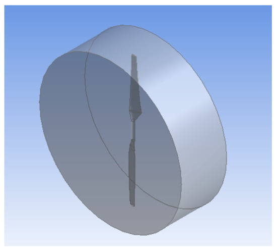 The NREL Phase VI wind turbine blade and rotor were modeled in SolidWorks using information provided in the NREL Report [8], from which the Sequence “S” of the blade study series is used. It is characterized by zero yaw angle, no tittering, and the absence of the five-hole probes, to exclude their influence on the fluid flow. The main region of the blade starts at 1.257 m from the hub and ends at 5.029 m. It has a variable twist angle in the span-wise direction based on the NREL s809 airfoil profile. Its chord length decreases toward the end of the blade and the local twist angle changes in the clockwise direction from its root to the tip. The developed 3D models can then be imported into ANSYS.