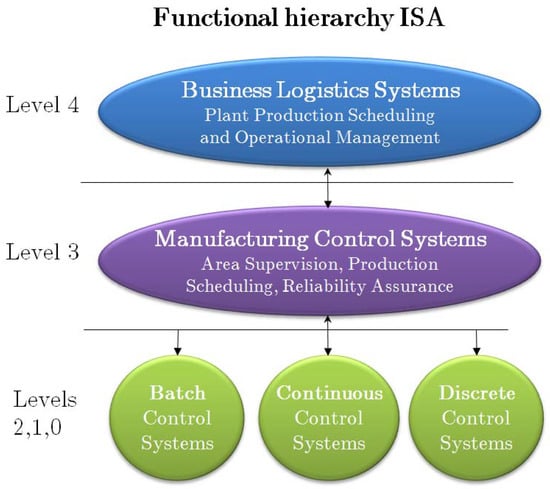 - International Society for Measurement and Control. ISA-88/95 technical report: Using ISA-88 and ISA-95 together. In ISA The Instrumentation, Systems, and Automation Society 2007; Technical Report; ISA: Durham, NC, USA, 2017. [Google Scholar]
