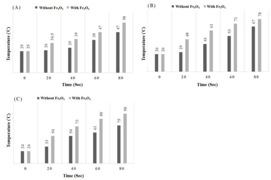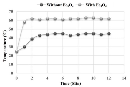 3.2. Temperature Comparisons of the Microwave Process with and without Fe3O4 Co-Catalyst