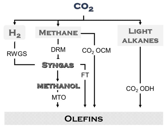 3.4.7. Oxidative Dehydrogenation (ODH) of Light Alkanes to Alkenes with CO2